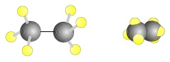 El compuesto anterior se conoce como etano. Para simplificar se suele dar de forma “semidesarrollada”, indicando únicamente los enlaces C-C, es decir: CH3-CH3
