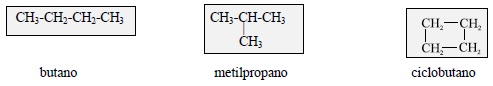 Tanto el butano como el metilpropano tienen la misma fórmula molecular (C4H10), sin embargo se trata de dos compuestos distintos, con una estructura y propiedades diferentes. Se dice entonces que son isómeros.