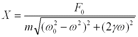 donde la frecuencia angular de oscilación del sistema ω es igual a la que tiene la fuerza de excitación, y la amplitud y el desfase no dependen de las condiciones iniciales sino de características del sistema y del valor de la fuerza aplicada.