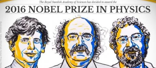 En 2016, el premio Nobel de Física fue concedido a David J. Thouless, F. Duncan Haldane, y J. Michael Kosterlitz por sus estudios sobre los estados exóticos de la materia. Estos científicos han estudiado fases extrañas de la materia como superconductores, superfluidos o capas delgadas magnéticas. |