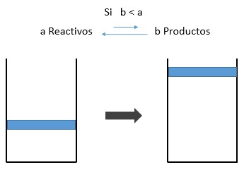 Al aumentar la presión del sistema (disminuir V) el equilibrio se desplaza al miembro con menor número de moles de gasesPor el contrario, si aumenta el volumen del sistema (sin cambiar la temperatura), la presión total disminuirá. El sistema reacciona favoreciendo el sentido de la reacción en el que aumenta el número de moles de gases ya que así aumentaría la presión total.