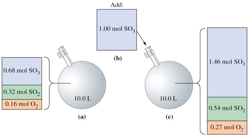 Analice las siguientes situaciones que afectan a diferentes equilibrios1.- ¿Por qué si añadimos 1,00 mol de SO3 a un recipiente que contiene 0,68 mol de SO3, la cantidad final de SO3 en el sistema es solo 1,46 mol? |