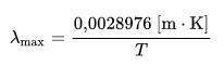 Esto supone que si la temperatura absoluta se duplica, la energía liberada se hace 16 veces más grande.Por otra parte, según la ley de desplazamiento de Wien de 1893, la longitud de onda a la que se produce el máximo de emisión a una temperatura dada cumple: |