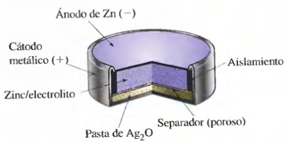 1942: Baterías botónSamuel Ruben (fundador de Duracell) inventó las pilas botón con mercurio a solicitud del ejército americano para ser aplicadas en aparatos en los que el tamaño de la pila fuera una variable relevante. Hoy día se siguen utilizando en relojes, cámaras fotográficas, etc.En esta pilas el ánodo es una amalgama de Zn-Hg y el cátodo puede estar formado por óxido de mercurio (II) HgO o por óxido de plata (Ag2O). En el primer caso (con HgO) la reacción en el cátodo y la reacción global de la pila son:
