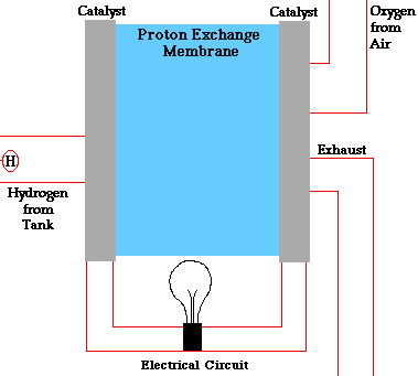 En una pila de combustible como la de la figura, la reacción global que se produce es la combustión del hidrógeno, sin embargo, la energía liberada no se recoge en forma de calor sino en forma de energía eléctrica. Este hecho provoca que el rendimiento de este tipo de dispositivos sea muy alto (83 %).