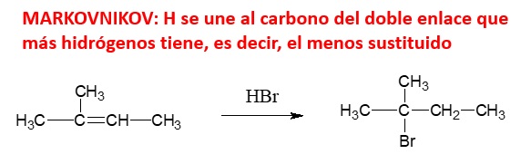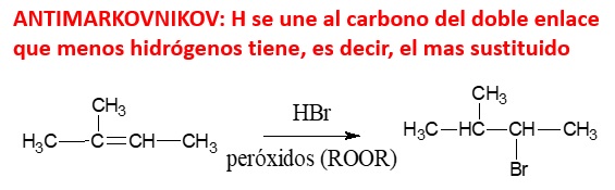 Las reacciones de adición a alquenos y alquinos pueden presentar dos regioquímicas: MARKOVNIKOV (habitual) y ANTIMARKOVNIKOV