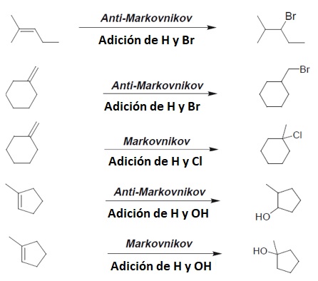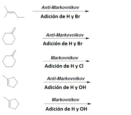 EJERCICIOIndique el producto esperado en las siguientes reacciones de adición con ayuda de la información suministrada