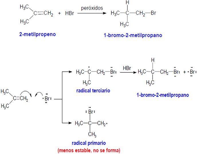 Esta regioquímica está relacionada con un mecanismo basado en radicales libres. |
