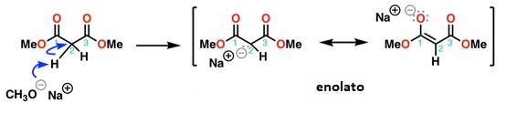 SÍNTESIS DEL ÉSTER MALÓNICOEjemplos de síntesis del éster malónico:El mecanismo de la síntesis del éster malónico tiene cinco pasos:1.- Desprotonación para obtener el ion enolatoUna base fuerte es capaz de abstraer el protón más ácido del éster2.- Reacción SN2 de un enolato nucleófilo con un haluro de alquilo electrófiloEl enolato actúa como nucleófilo atacando el haluro de alquilo3.- Hidrólisis ácida del ésterLa adición de ácido acuoso produce la hidrólisis del éster generando un ácido carboxílico4.- DecarboxilaciónLos ácidos carboxílicos que tienen un grupo carbonilo a dos enlaces de distancia del grupo carboxilo (beta-ceto ácidos) sufren decarboxilación por calentamiento. Este proceso produce un enol.5.- TautomerizaciónEl enol no es estable, sufriendo una transformación en su isómero constitucional, un ácido carboxílico.
